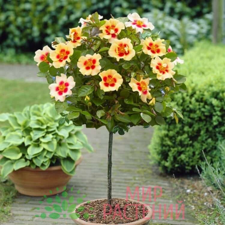 Немного о серии. Это гибриды персидской (иранской) розы — Hulthemia persica. В природе это низкий кустарничек, растущий в пустынях Центральной Азии и Ирана. Используется в садоводстве для получения гибридных сортов роз. Все «персиянки-иранки», помимо яркости, отличаются отменным здоровьем, устойчивостью к непогоде, бодрой глянцевой листвой, абсолютно устойчивой к черной пятнистости. Привлекает садоводов и универсальность использования: массивы, как почвопокровная, бордюрная,а также в качестве контейнерной. Столь универсальна такая роза.