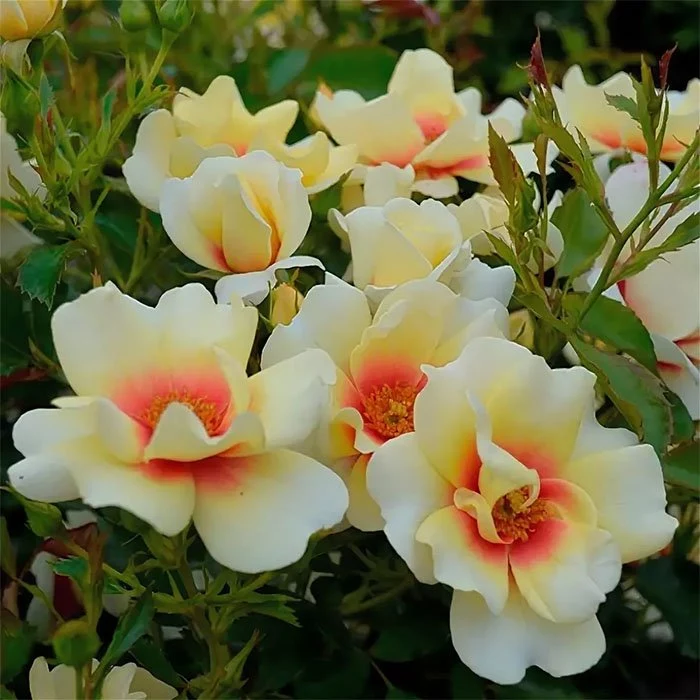 Роза Глориос Бэбилон Айз на штамбе 130 см — компактное растение. Цветки диаметром 6 см, простые, бледно-жёлтые с красным пятном в основании лепестков. Тональность цветков в процессе цветения меняется. Цветение обильное, повторное в течение сезона. Период цветения июнь-октябрь. Листва устойчивая к заболеваниям. Аромат средний. Присутствуют шипы. Зона 6.